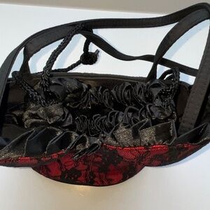 This is a bag that wasn’t used but on my daughter’s shelves as part of a collection. Just downsizing them on Poshmark. Sizes approx in photos. Bag has a satin style cinch closing.