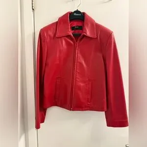 Elevate your style with this stunning red leather jacket. Perfect for any occasion, this jacket combines elegance and comfort.