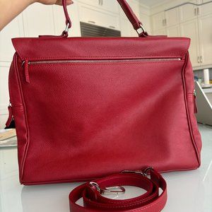 Longchamp laptop bag/briefcase in red cowhide leather. The bag has a flap opening with a turn lock hardware closure and 'Longchamp' embossed.