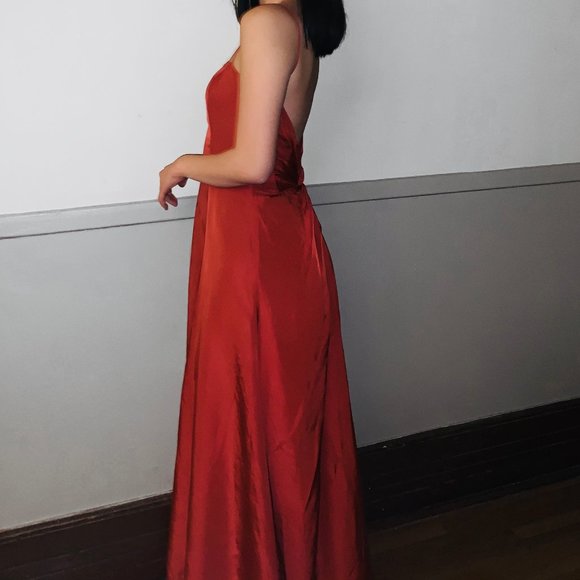 Red Low Back Twist Cross Formal Prom Dress Medium