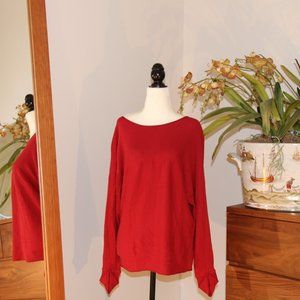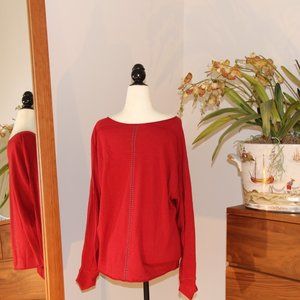 Red Marc Cain long-sleeve top. Wool, silk, and cashmere. Metal detailing along the back