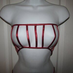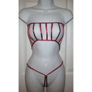 Red Metallic Micro Strappy String Thong Bikini - NEW