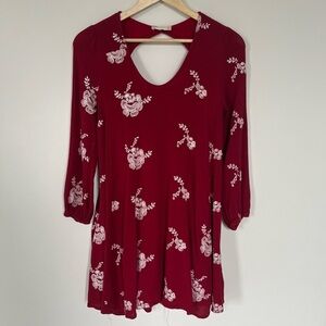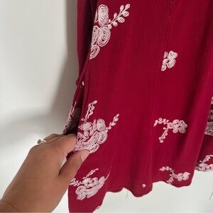 Red Mini Dress Embroidered White Florals Bohemian Alter’d State Size Small