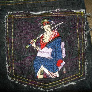 Red Monkey Company Jeans With Two Animated Woman On The Back Pockets In Good Condition