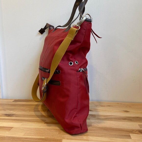 Item keywords: tote bag, red bag, Mouflon bag, convertible tote, crossbody bag, suede pocket bag, large tote, zippered bag, adjustable strap bag, nylon tote, casual bag, shoulder bag, stylish bag, travel, travelling, feminine , vibrant color