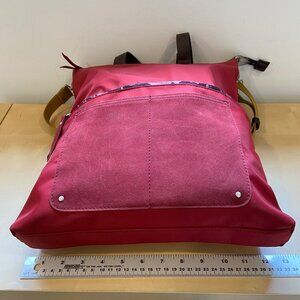 Red Mouflon Convertible purse/Tote Bag With Adjustable Strap Faux Leather Handles & Front Suede Pocket