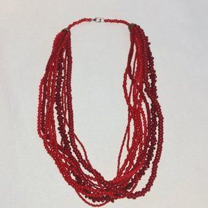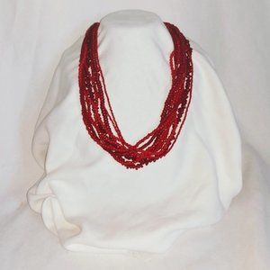 Red Multi-Strand Mixed Beads Choker-Chick/BOHO