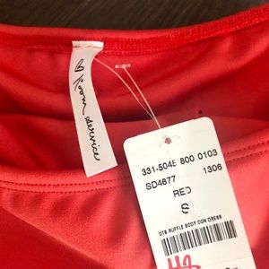 BNWT Fitted Midi Off the shoulder Dress in a vibrant red.