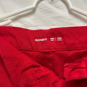 These Old Navy red skinny ankle jeans feature a flattering mid-rise and slim fit that tapers at the ankle, offering a stylish look with everyday comfort. These jeans pair effortlessly with both casual tees and dressier blouses.