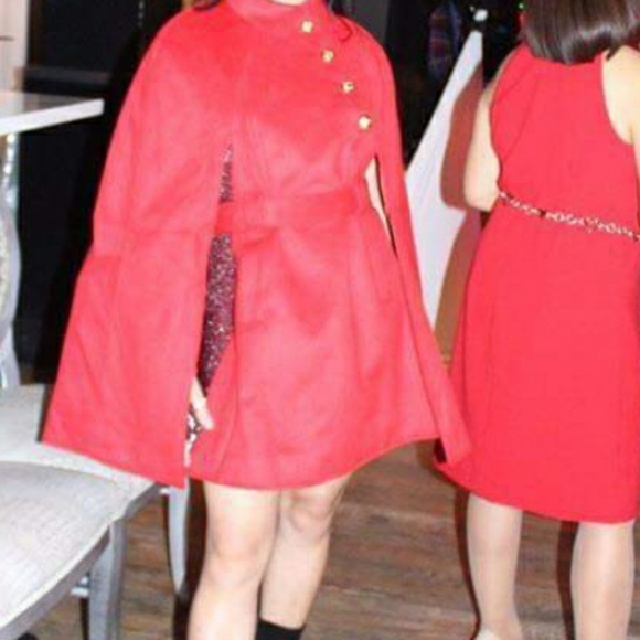 Red Open Front Cape Overcoat