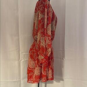 Red Paisley Long Sleeve Flowy Mini Dress. Size Small.