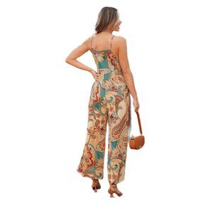 ❤️ Red Paisley Spaghetti Strap Wide-Leg Jumpsuit – Sizes S To XL