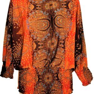Red Paisley Top with Dolman Style Sleeve Blouse - One Size