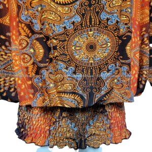Soft, Light, Comfy Colorful Paisley Print Blouse Top in red and orange colors