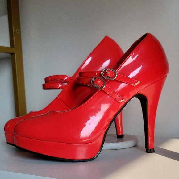 Step out in style with these stunning red patent leather Mary Jane heels. Worn a few times. In great shape.