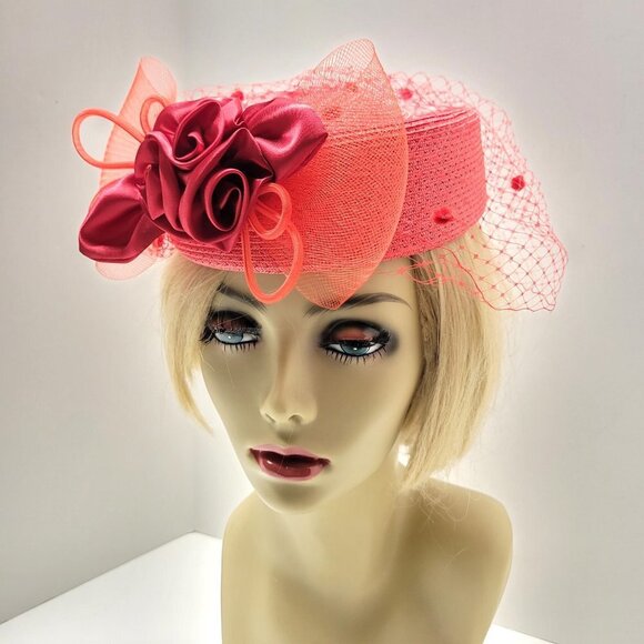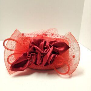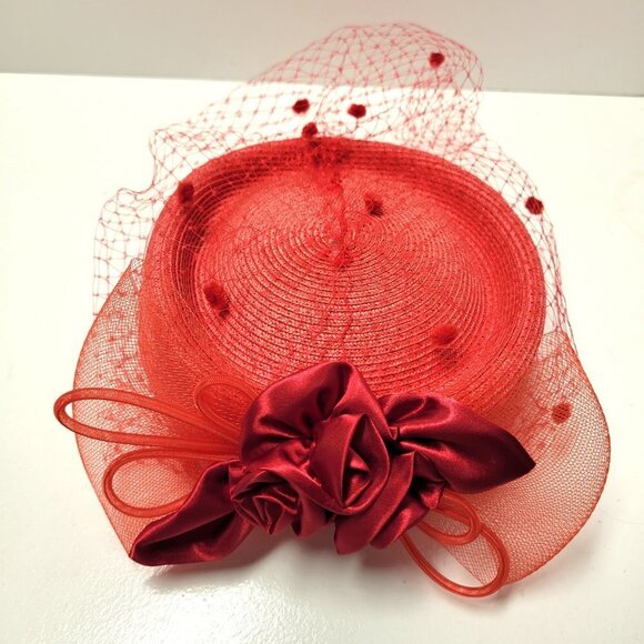 Red Pillbox Hat with Netting