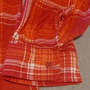 New. 100% polyester. Stylish red plaid button-up tunic with tie detail. Features a chest pocket and long sleeves. PTP 24, length 35 at the front 38 at the back, sleeve 24.5 and hips 26.