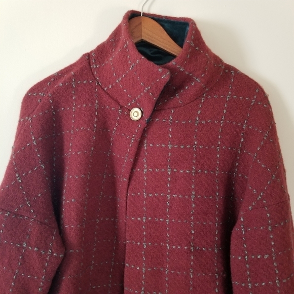 Stay stylish and warm with this elegant red plaid coat. Perfect for any occasion.