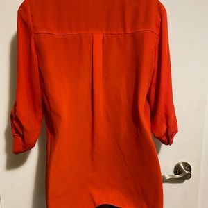 Vibrant red blouse with flattering front slit and rolled 3/4 sleeves. No signs of wear or stains. Worn a handful of times. Colour is very nice on light skin tones.