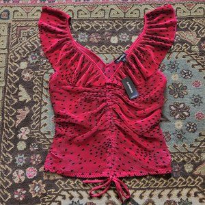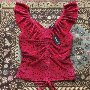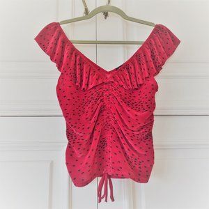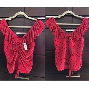 Red Polka Dot Pleated Cinched-Front Top *NEW with Tags* Size S