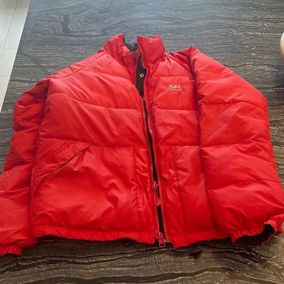 X-Girl Mademe Red and black reversible women’s winter puffer jacket