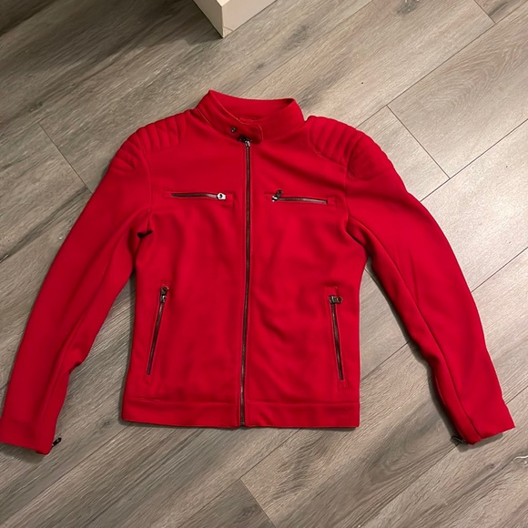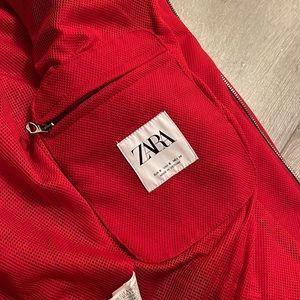 mint condition red racing jacket made by zara, nice quality zippers. nice button up collar send offers!
