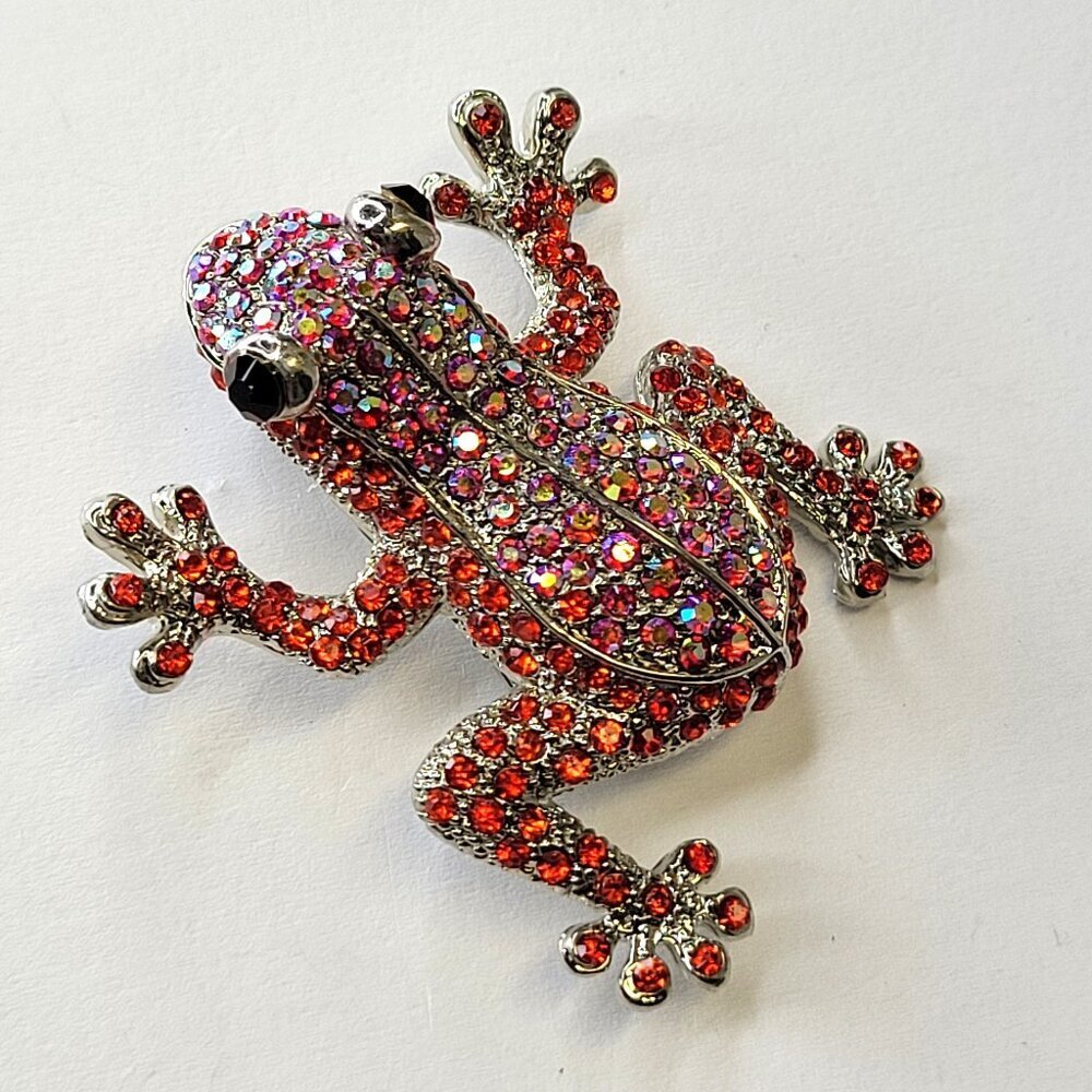 Dazzling Frog Pin with red fashion crystals embedded all over