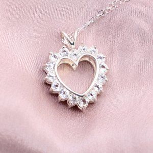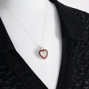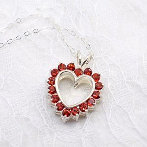 Red Rhinestone Heart Pendant Necklace Reversible Sterling Silver Clear Red 18"