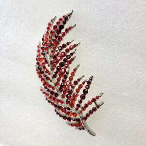 Red Rhinestone Leaf Brooch