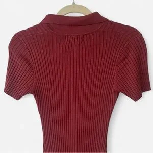 Red Ribbed Button-Up Dress