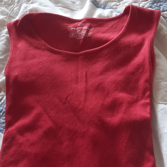 100% cotton sturdy tank top. I self adjusted it, so it looks odd from the inside. Free with purchase of 2 or more items!