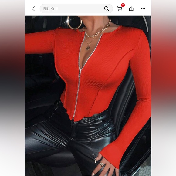 Elevate your style with this vibrant red ribbed top. Featuring a sleek zip-up design, it's perfect for any occasion.