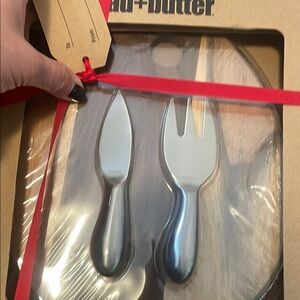 This exquisite serveware set features a knife and fork with elegant silver metal parts and striking red accents. Packaged in a gift box with a clear plastic window, it is perfect for special occasions. The festive red ribbon adds a charming touch, making it an ideal gift for dining enthusiasts.