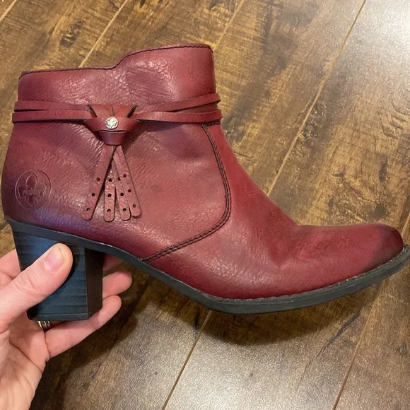 Red Rieker booties.