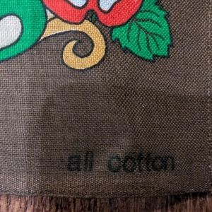 Red Rose Country Vintage Tea Towel - features historic buildings in Great Britain. Markings include Designed specially for the "Red Rose Festival" 1976. Made in Britain. Brown and green earthtone.