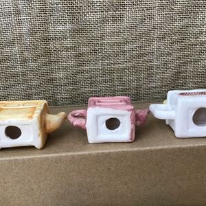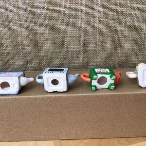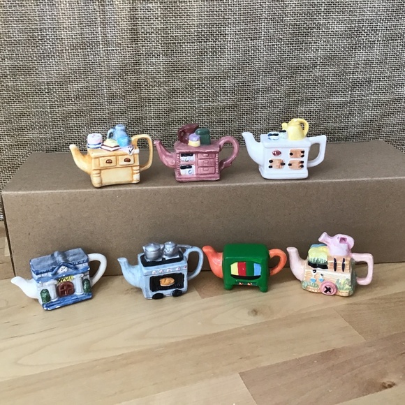 I love miniatures so when my grandma passed she gave me her little tea pots but now time to downsize so here is group cute teapots for your collection. There is chipping on last photo pot the blue one. The tea pots are sold as group reposh the ones you already have. Bundle in my closet to save on shipping.