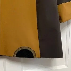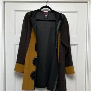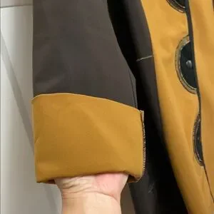 Red Rover Dublin rain coat in honey and brown. Swing coat style, snap buttons, roomy hood, front pockets and rolled cuffs. Very unique. Sized as medium, fits M/L (PtP=22”). Like new condition.