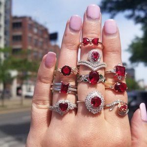 Beautiful Red Ruby Gemstone Heart bow ring from Charmed Aroma. Made with solid 925 Sterling Silver and finished in 18k rose gold. I collected much of these at the time as I was a big fan of their color gemstone rings.