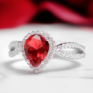 Red Ruby Pear Gemstone ring, size 7, 925 Sterling Silver
