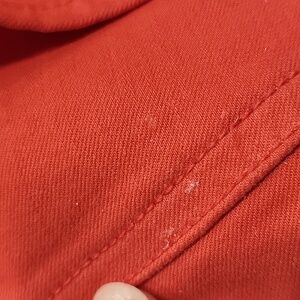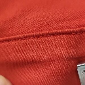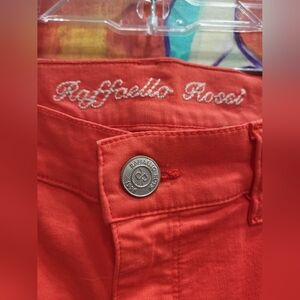 Red jeans with a ruffle at the cuff of the jeans from Raffaello Rossi.