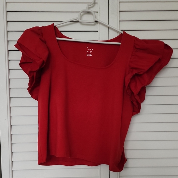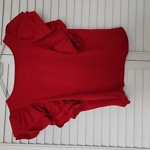 Elevate your style with this vibrant red top featuring elegant ruffle sleeves. Perfect for any occasion.