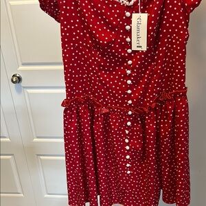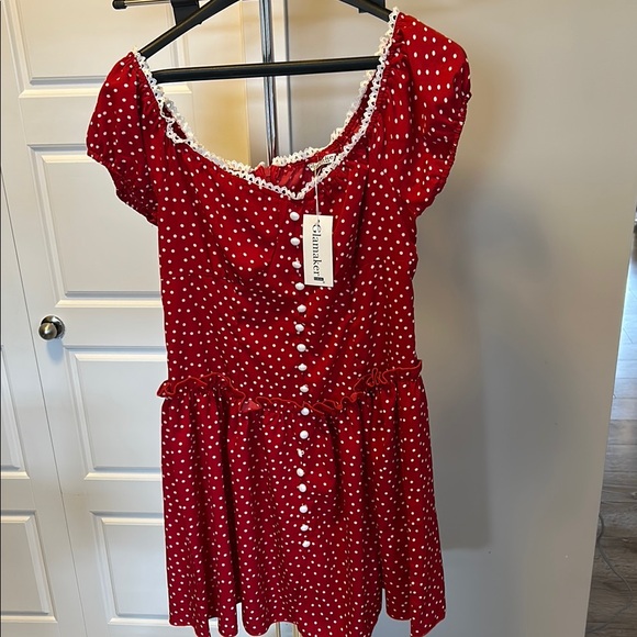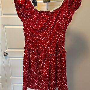 This vibrant red mini dress showcases a playful ruffled design with flutter sleeves and a scoop neckline. Its light and airy fabric makes it ideal for casual outings, adding a touch of fun to your look.