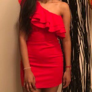Red Ruffled One-Shoulder Bodycon Dress Small S