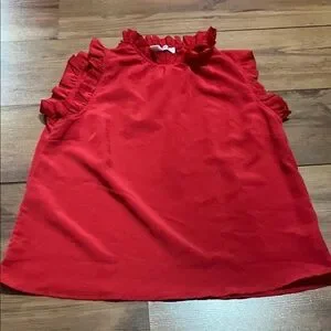 Elegant red sleeveless top with ruffled details. Perfect for any occasion.