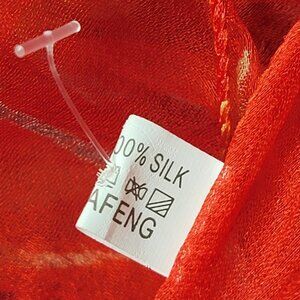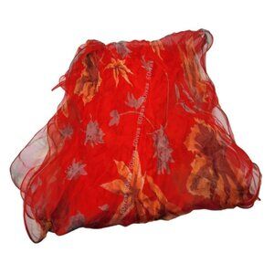 Two layers - one in a solid red and the top has a gorgeous floral motif with brown and grey leaf prints throughout.