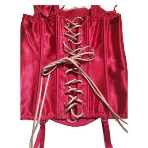 Red Satin Bustier Corset Set – Size 34 (NWT)