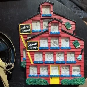 Charming red school-themed photo frame. Features slots for each grade. Perfect for capturing school memories. set of two