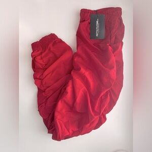 PrettyLittleThing Red Shell Ruched Drawstring Joggers