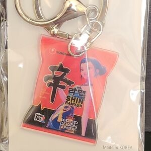Add a pop of color to your keys with this vibrant red Shin Ramyun keychain. Perfect for fans and collectors.