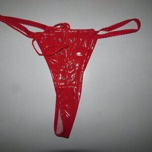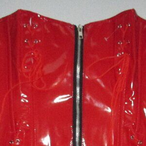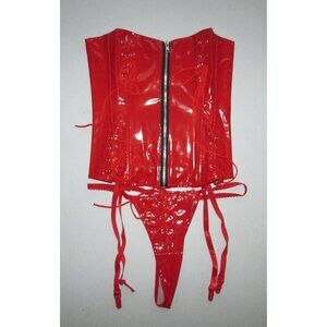 Red Shiny Vinyl Lace Ups Corset Set - NEW